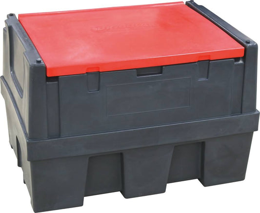 Cuve de ravitaillement gasoil PE 450L avec kit pompe à gasoil 12V 45 l/min et pistolet automatique/capot