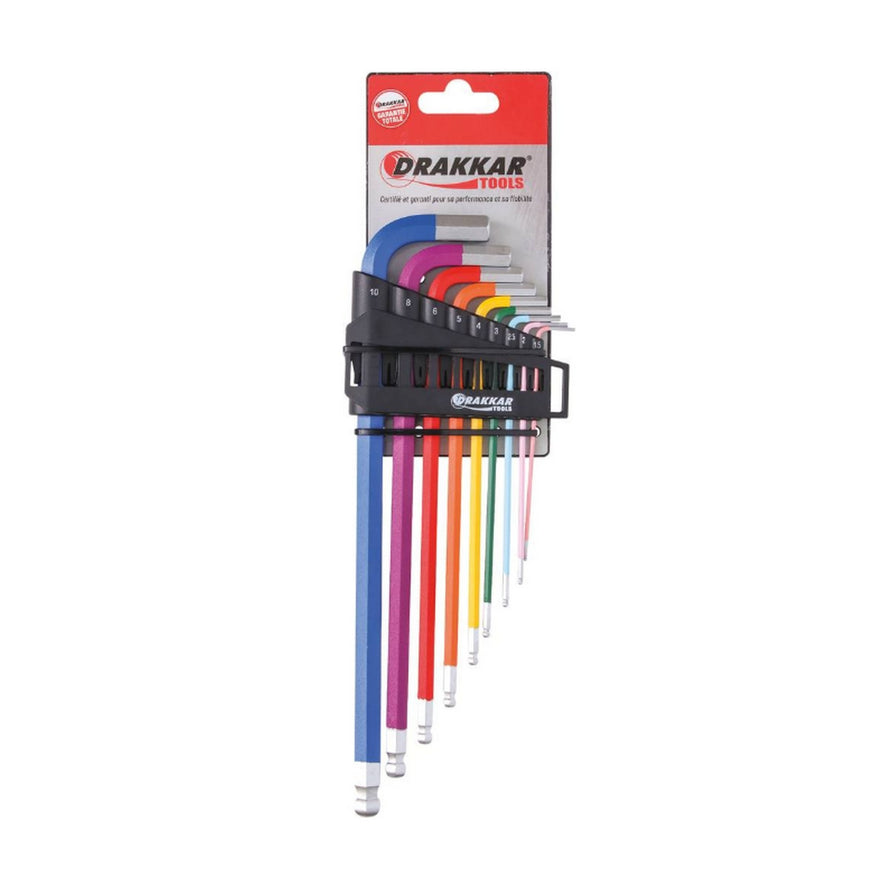 9 clés mâle hexagonales extra longs embout sphérique - couleurs S/Carte