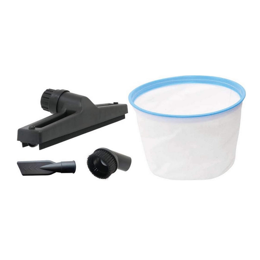 Aspirateur équipé d'un tuyau de vidange, de larges clips de fermeture, d'un porte accessoires, d'un range tuyau.