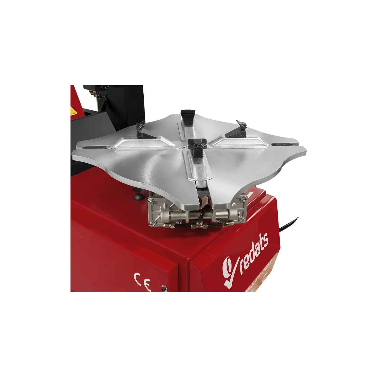 Le démonte-pneus de REDATS est équipé d'un troisième bras - elle bloque les parties du talon du pneu situées sous le bord de la jante, ce qui signifie un travail beaucoup plus facile lors du démontage des pneus. Utiliser le troisième bras est très simple : il y a le joystick « haut-bas ».