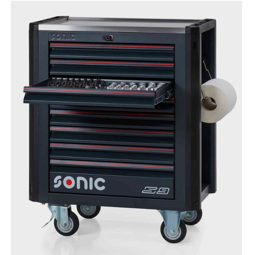 La servante d’atelier S9 NEXT Sonic est notre solution la plus adaptée pour les techniciens à la recherche d’un ensemble d’outils basique ou intermédiaire. Ce qui fait de cette servante d’atelier notre modèle le plus vendu et recommandé n’est pas seulement sa hauteur, mais son encombrement réduit avec seulement 83 cm de largeur et 52 cm de profondeur. Cette taille réduite combinée à sa capacité de stockage permet à cette caisse d’être la meilleure vente dans la gamme.